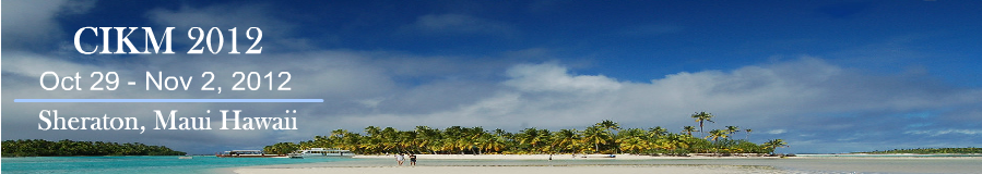 This workshop will be held as part of the 21st ACM International Conference on Information and Knowledge Management, Maui, 2012. Information on Maui can be found in the Wikipedia.